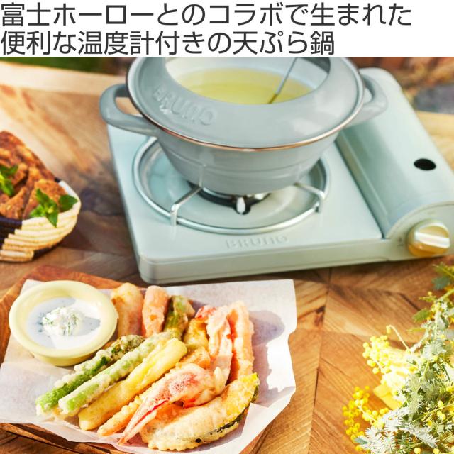 BRUNO ホーロー天ぷら鍋 20cm IH対応 富士ホーロー ( ブルーノ BRUNO×FUJIHORO ガス火対応 揚げ鍋 揚げ物鍋 天ぷら用鍋 フライヤー なべ お鍋 20センチ 両手付き 温度計付き オイルガード ホーロー製 琺瑯鍋 おしゃれ )