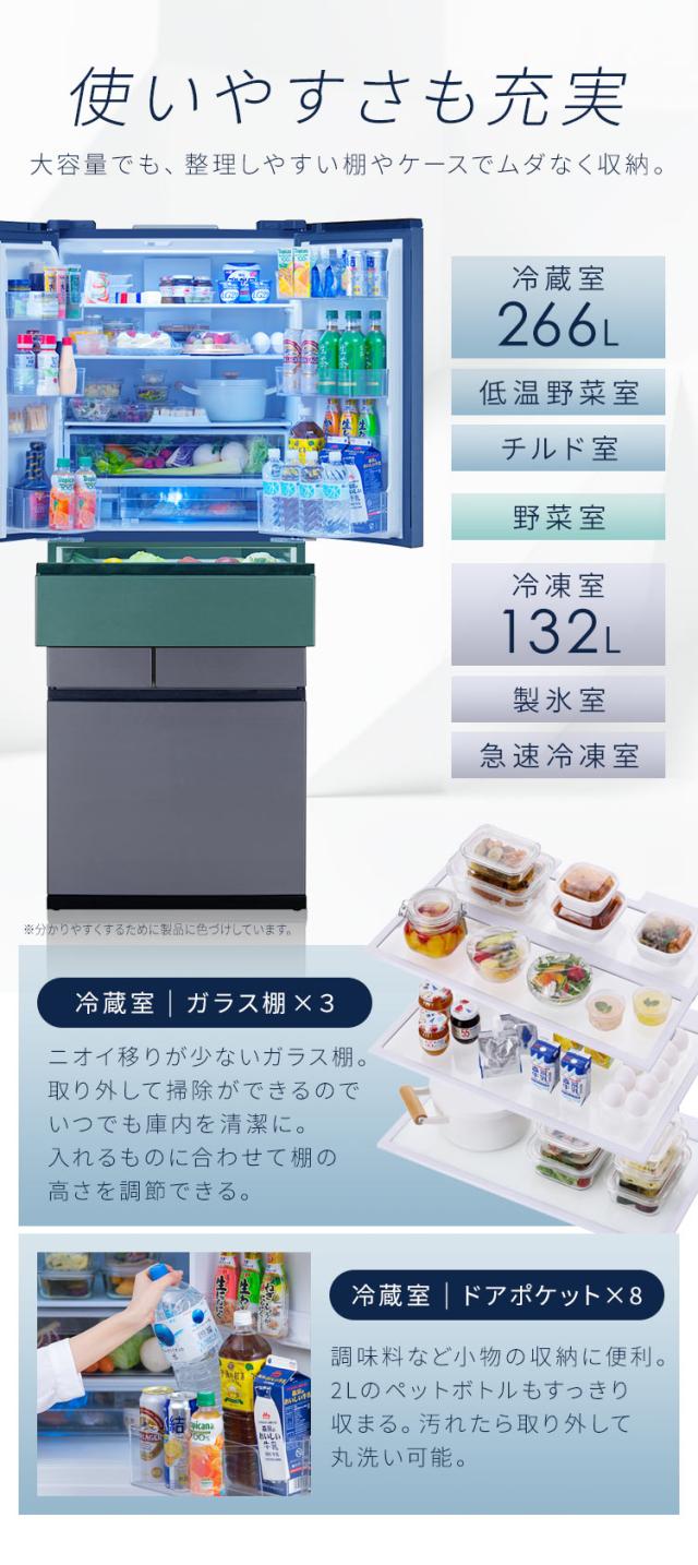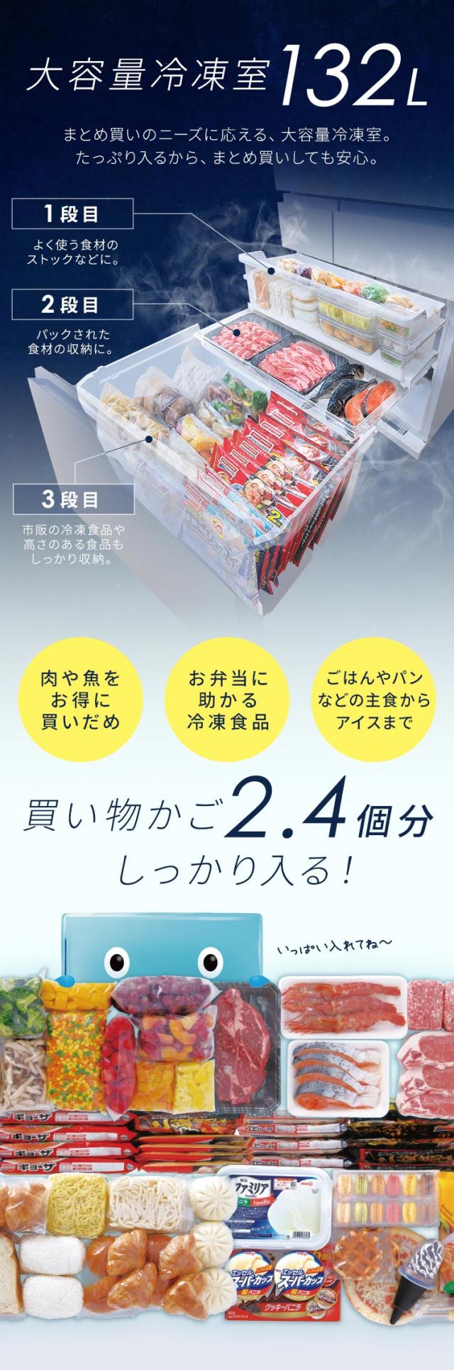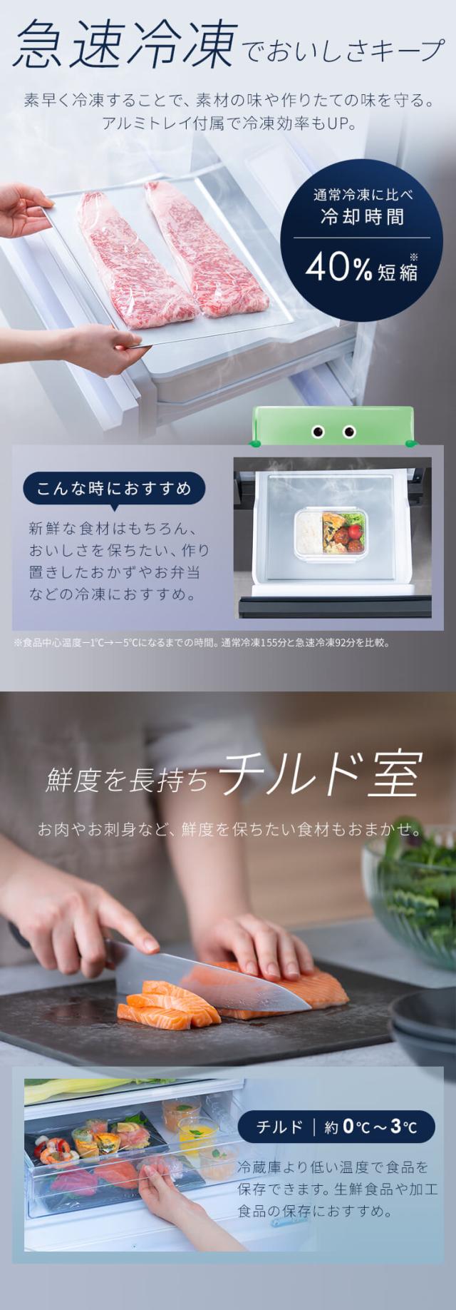 ※1:定格内容積は、日本工業規格(JIS C9801-3:2015)に基づき、庫内の温度制御に必要でない部分(ケースなど)を外した状態で算出しています。
