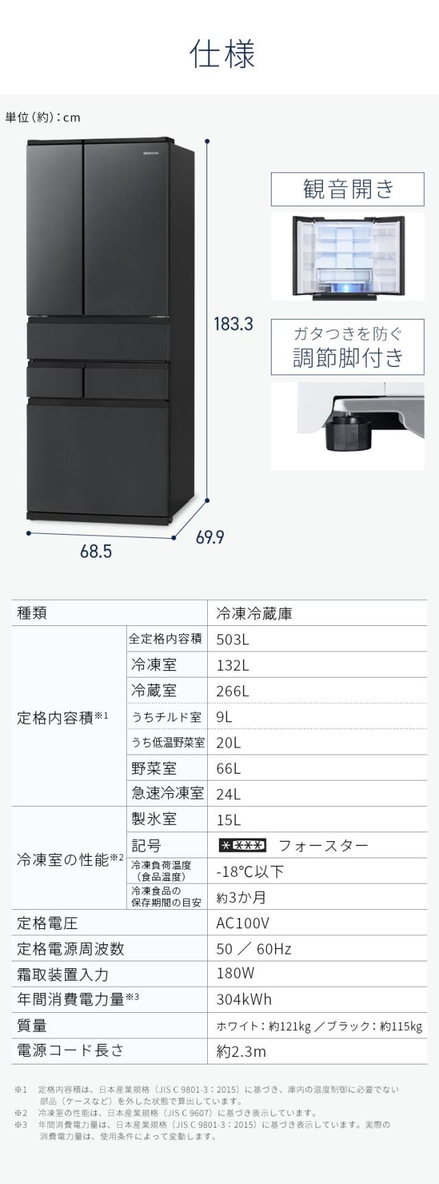 \7万円OFFクーポン!~11/17/ 冷蔵庫 大型冷蔵庫 503L 大型 冷凍冷蔵庫 冷凍庫 503l 両開き フレンチドア 観音開き 大容量 野菜室 温度調節 急速冷凍 自動製氷 静音 霜取り不要 エコ 節電 省エネ ホワイト ブラック 安心延長保証対象【HS】