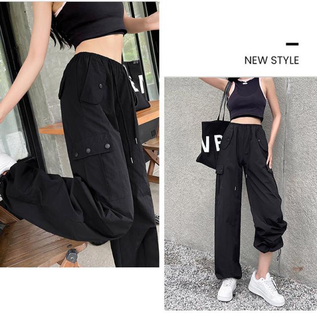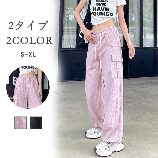 カーゴパンツ レディース ワイドパンツ ハイウェスト 2タイプ カーゴ レディースパンツ レディース ロングパンツ ダンス衣装 美