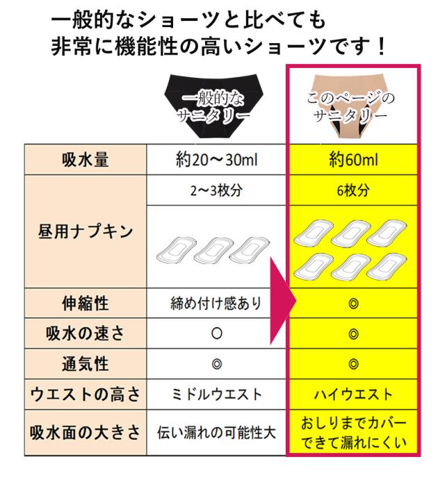| 商品名 | 吸水サニタリーショーツ 60ml吸水 ハイウエストタイプ |