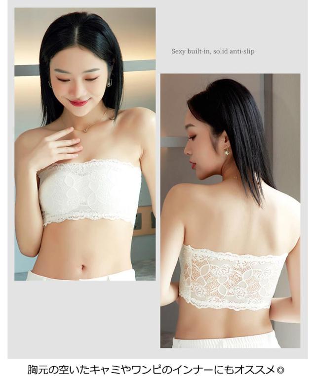 2枚セット チューブトップ 総レース ブラトップ ベアトップ ずり落ちない ブラ スポーツブラ 総レースチューブトップ 見せブラ ブラジャー レディース インナー スポーツブラ ベアトップ ストラップ付き 黒 白 全6色 送料無料
