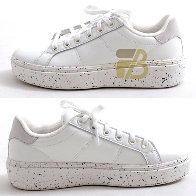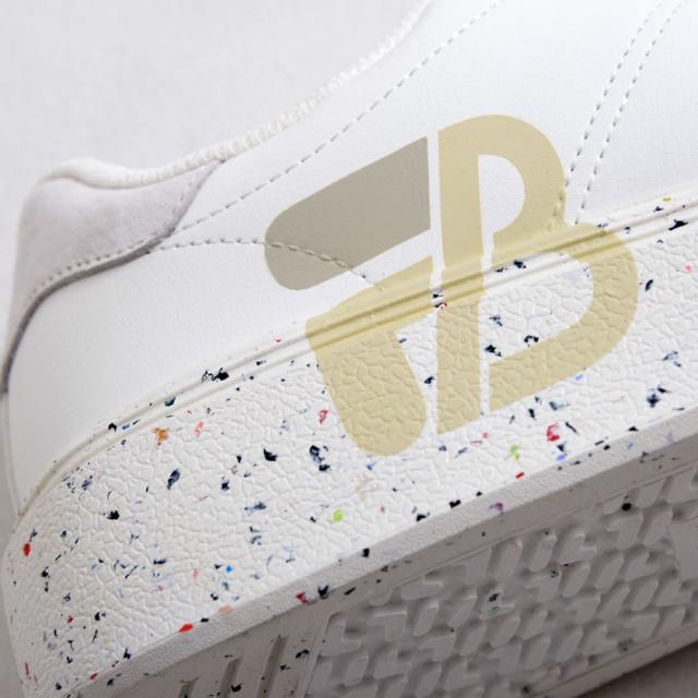 アッパー素材の90%をアップサイクル素材から再構成し、アウトソールにもリサイクルチップを組み合わせて素材感を表現。