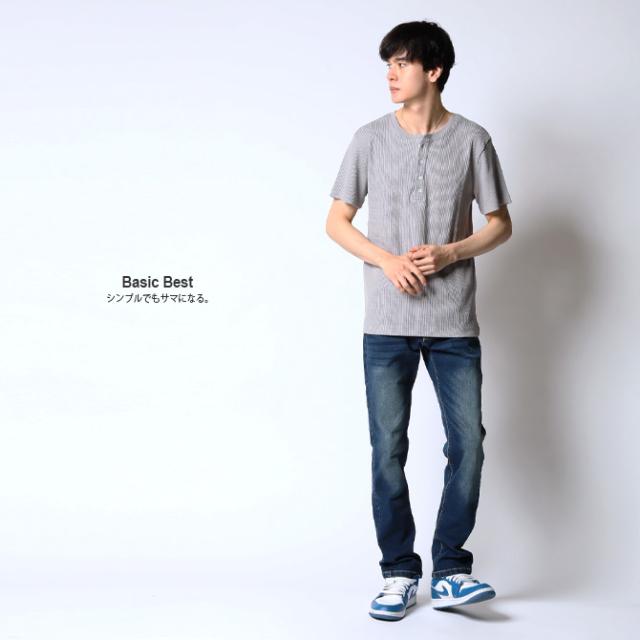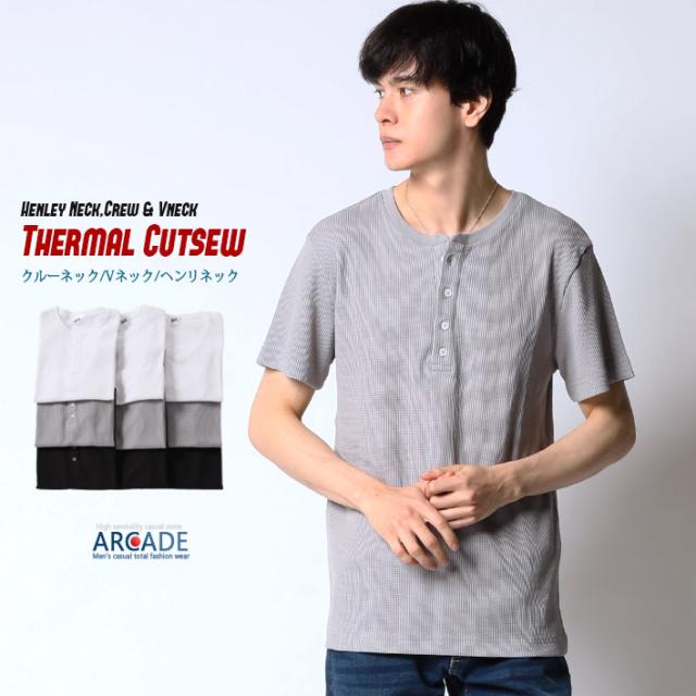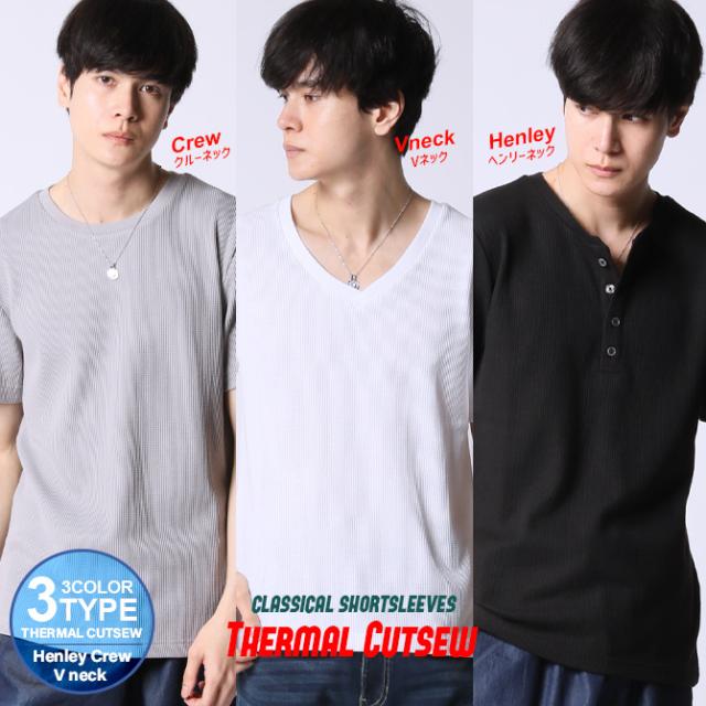 半袖Tシャツ メンズ ヘンリーネック カットソー 夏 新作 サーマル ワッフルカットソー 半袖 Tシャツ カットソー メンズファッション トップス インナー レギュラーフィット Vネック クルーネック 無地 Tシャツ