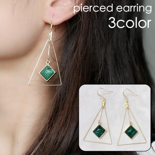 ピアス フックピアス レディース 女性 アクセサリー 揺れる 三角 マーブル柄 大きめ 存在感 おしゃれ 可愛い 普段使い お出