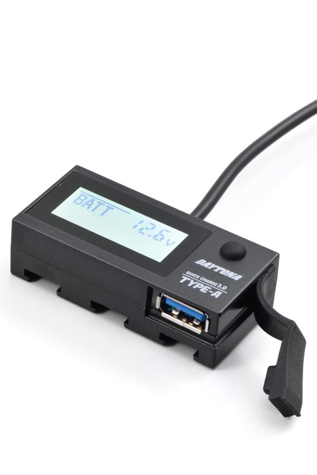 デイトナ バイク用 USB電源電圧計 USB-A QC3.0対応 急速充電 18W iPhone/Android対応 イープラスチャージャー 16077