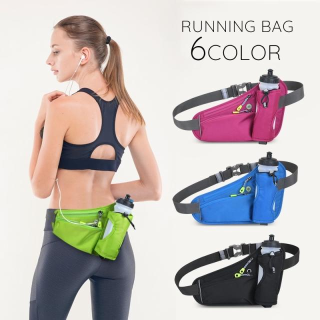 ランニングポーチ ウエストポーチ 男女兼用 レディース メンズ ランニングバッグ ボトルポーチ イヤホンホール ボトルホルダー