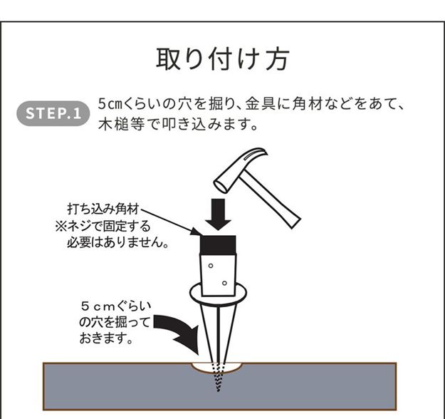 ※金具の埋込部分が約35cmあります。設置位置の土中に障害物がないかご確認ください。