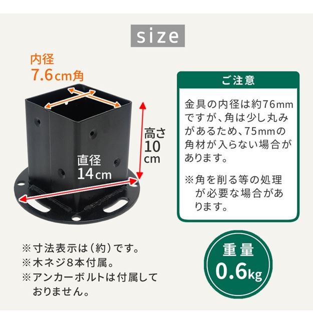 ★支柱サイズ75mmの角材に適した固定金具となっています。