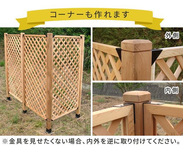 ●ラティスを金具に合わせて、木ネジで取り付けるだけの簡単設置。