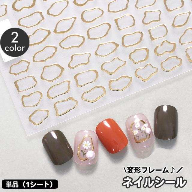 ネイルシール 単品 1シート フレームシール 変形フレーム レディース ネイルアート セルフネイル 爪用 透明ベース ニュアンス
