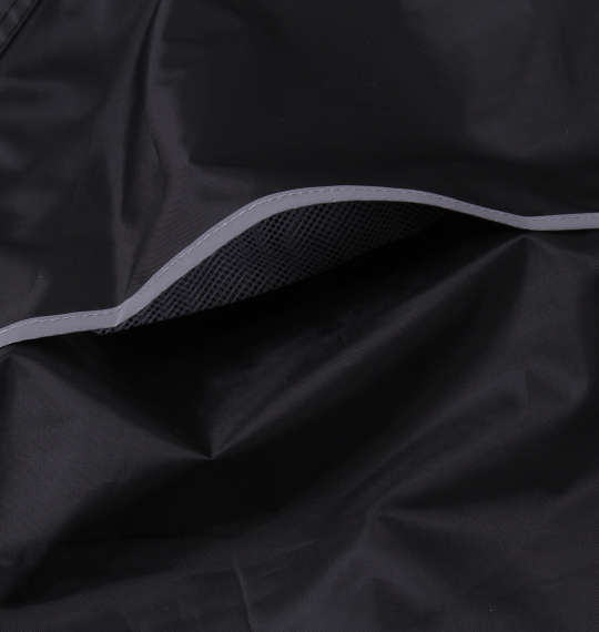 パンツ(前閉じ)/ウエストシャーリング(調節ひも有)/袖口(マジックテープ調節有)/パンツ裾口(2段階ボタン調節)/フード取外し不可(調節ひも有)/トップス(サイドポケット有)/背抜きベンチレーション有/収納ポーチ付/比翼仕立て/裏側マイクロメッシュ/はっ水/バック再帰反射テープ