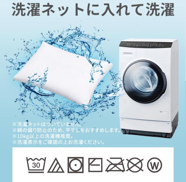 ・洗濯機や枕の破損、事故を防ぐため、洗濯機の容量、洗い方については洗濯機の説明書に従い洗濯ください。