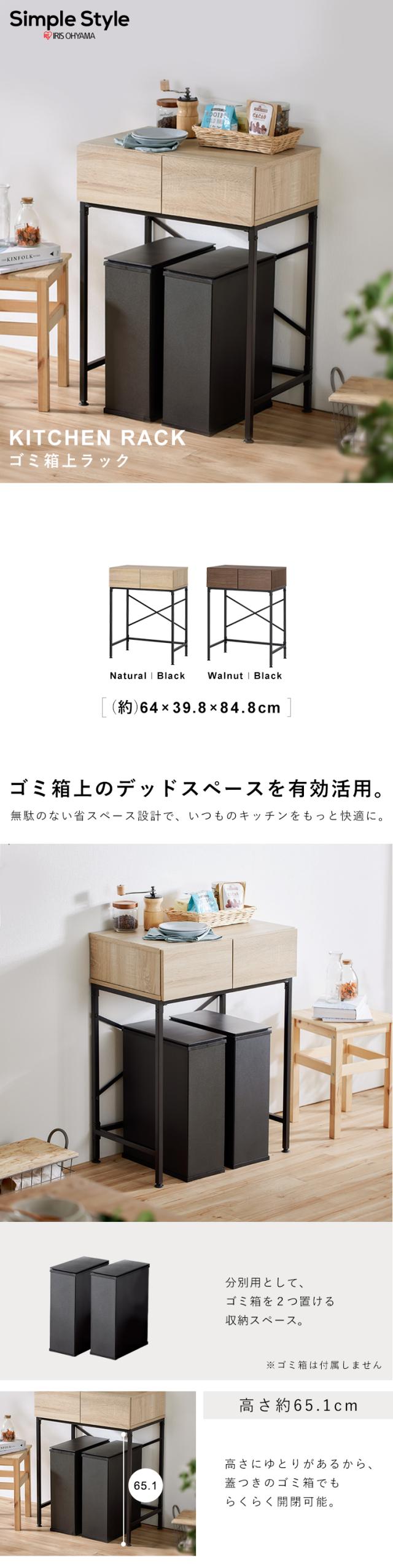 ★レビュー投稿でポイント還元★ ラック 棚 ゴミ箱上ラック GUR-640L ゴミ箱上 ゴミ箱 キッチン 台所 収納 木目調 省スペース 可動棚 引き出し デッドスペース活用 室内用 ゴミ箱 上 収納 電子レンジ台 炊飯器 64?p アイリスオーヤマ 送料無料 新生活 インテリア