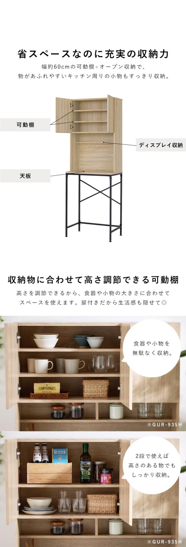 ★レビュー投稿でポイント還元★ 食器棚 スリム 幅64 コンパクト キッチン ラック おしゃれ レンジ台 下 ゴミ箱 収納 レンジラック 大型レンジ対応 ごみ箱 一人暮らし 新生活 アイリスオーヤマ GUR-640S *
