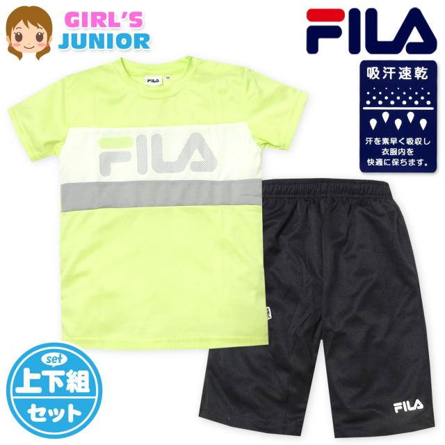 【送料無料】女児 ジュニア 吸汗速乾 半袖 Tシャツスーツ 上下組 FILA ハーフパンツ ジャージ 通気性 iw-0880b-gn【メール便対応】
