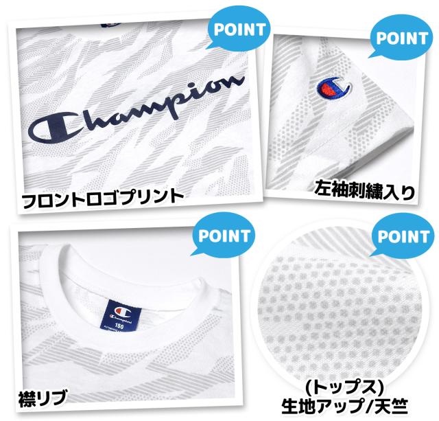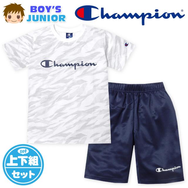 【送料無料】男児 ジュニア 半袖 Tシャツスーツ Champion ハーフパンツ 天竺 ポリエステルスムース td-0633a-wt【メール便対応】