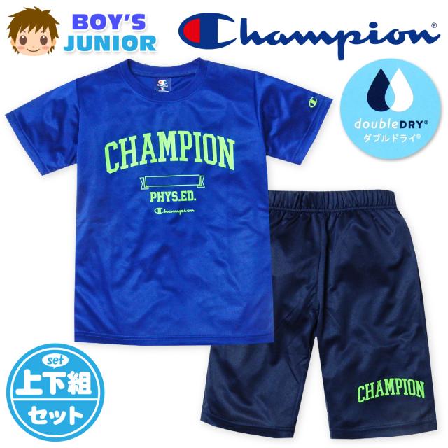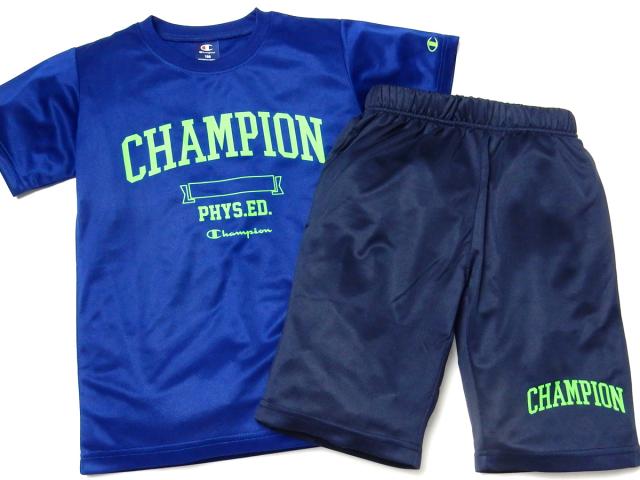 【送料無料】男児 ジュニア 吸汗速乾 半袖 Tシャツスーツ Champion ハーフパンツ ジャージ 裏メッシュ td-0634a-bl【メール便対応】