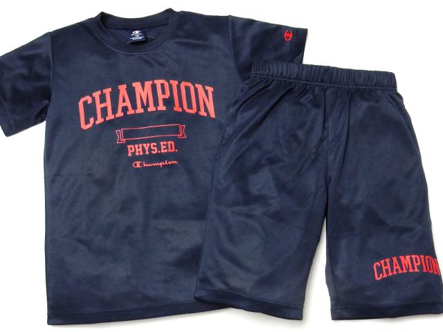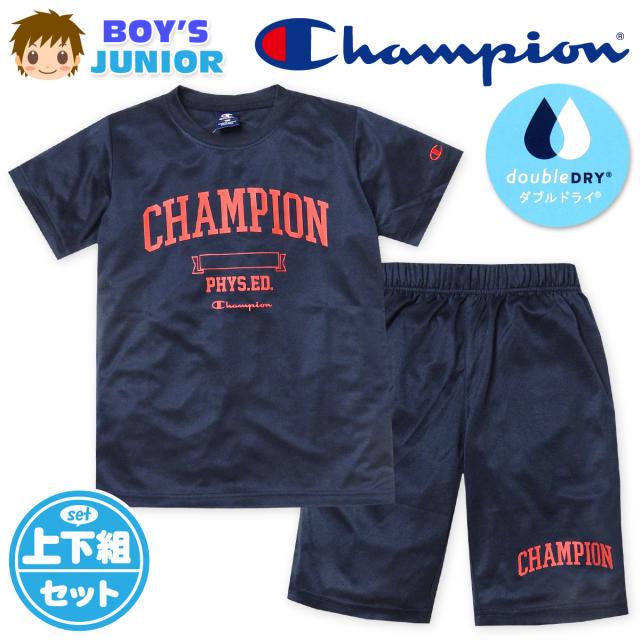 【送料無料】男児 ジュニア 吸汗速乾 半袖 Tシャツスーツ Champion ハーフパンツ 裏メッシュ td-0634b-nv【メール便対応】