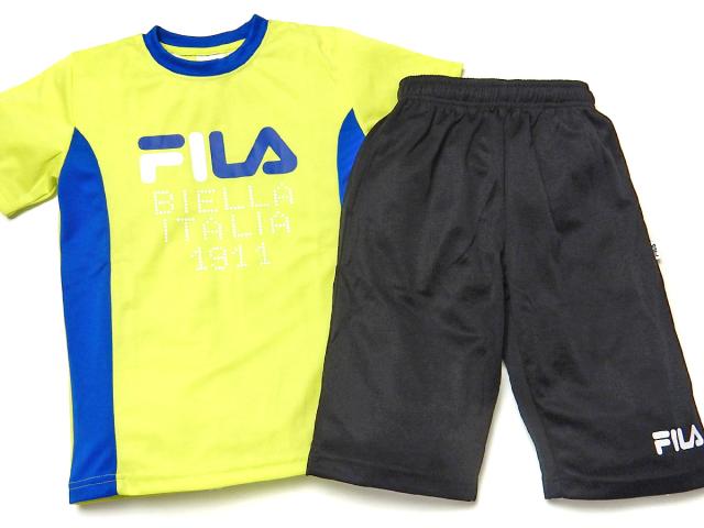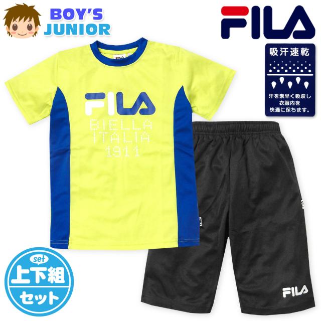 【送料無料】男児 ジュニア 吸汗速乾 半袖 Tシャツスーツ 上下組 FILA ハーフパンツ ジャージ 通気性 iw-0884a-ye【メール便対応】