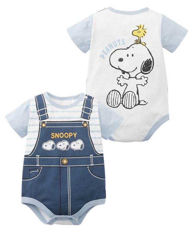 【スヌーピー・ディズニー】前後プリント 半袖ロンパース(ベビー服・子供服 男の子・女の子)