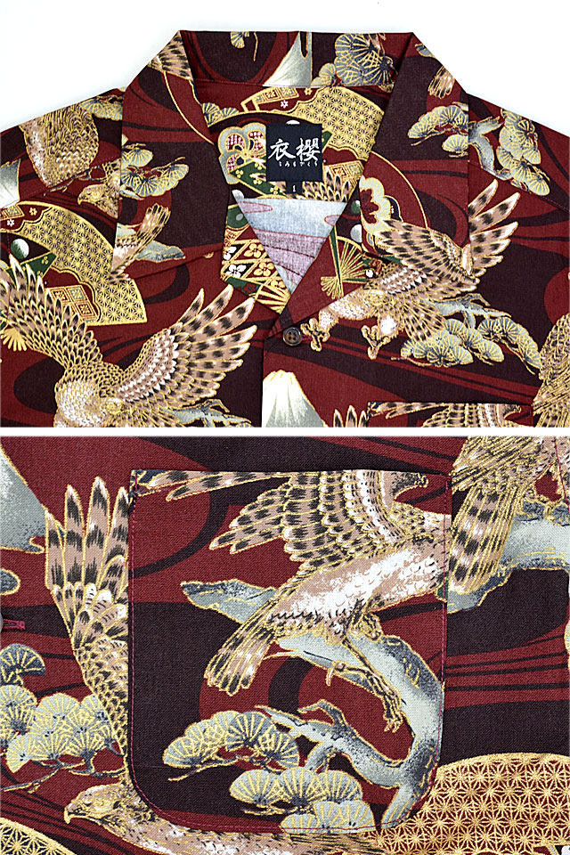 コットンアロハシャツ「富士と鷹」 衣櫻 SA-1539 和柄 和風 日本製 国産 富士山 タカ オープンカラー