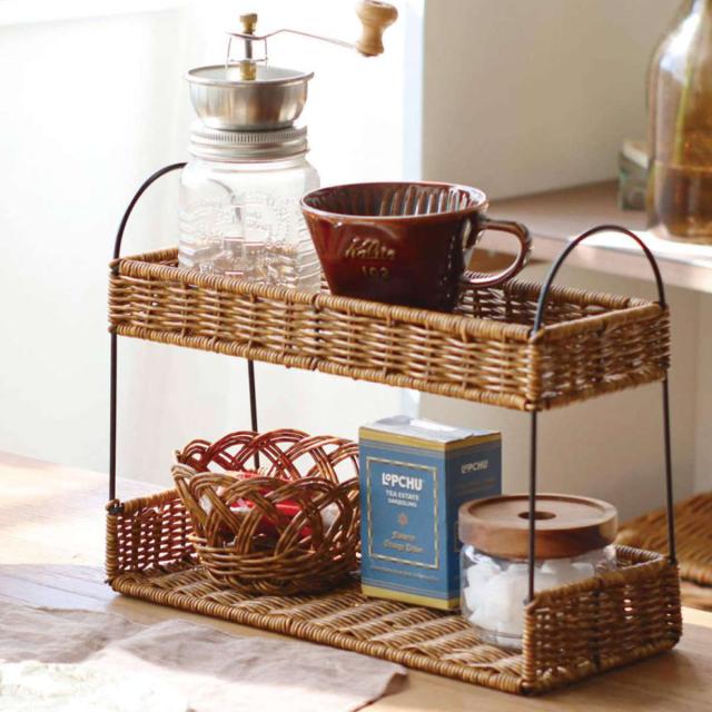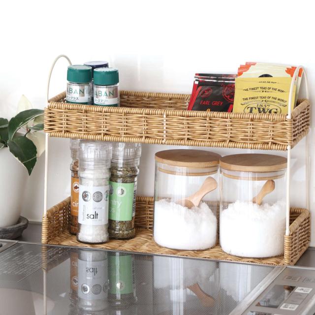 調味料ラック ユティル アイアンスパイスラック ( 洗える 洗えるバスケット 2段 調味料収納 調味料置き スパイスラック バスケット キッチン 収納 かご カゴ 籠 籐かご風 小物収納 北欧 北欧風 ナチュラル )
