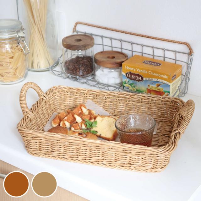 汚れたらさっと水拭きできる、キッチン収納に最適なポリプロピレン製のトレイです。見た目はまるで天然素材のようなおしゃれさで、パンやお菓子を入れて食卓に出してもおしゃれです。