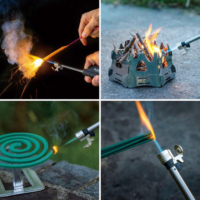 使用時は伸ばして安全に、収納は縮めてコンパクトに、伸縮自在で便利な小型バーナーです。