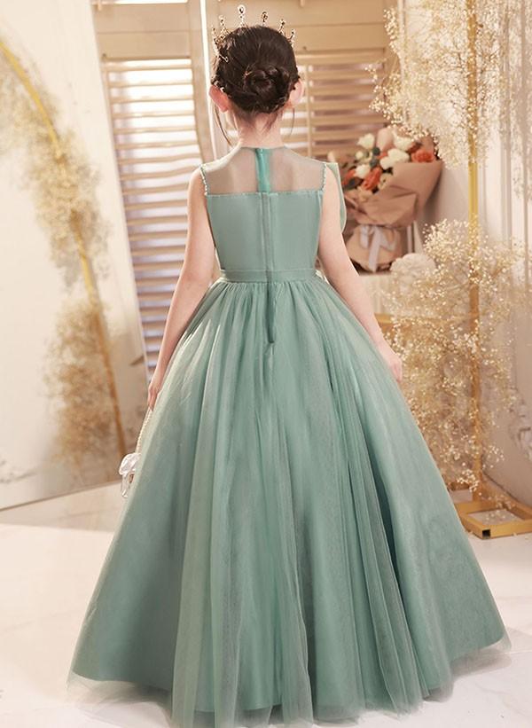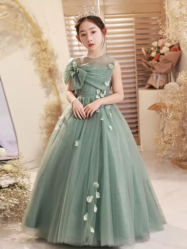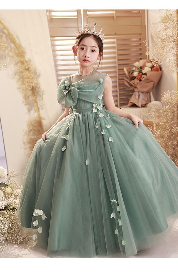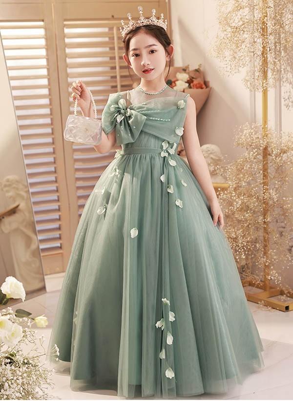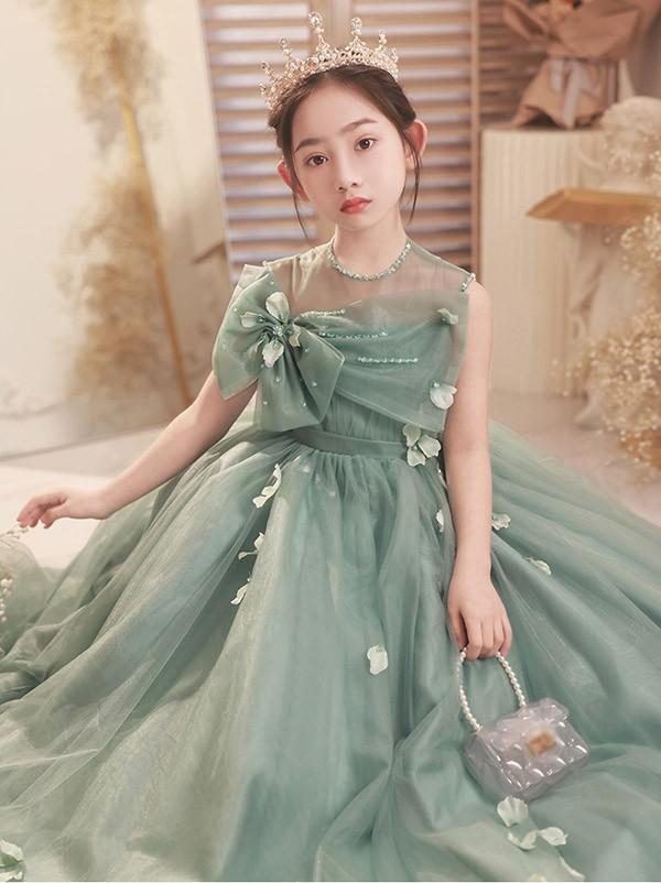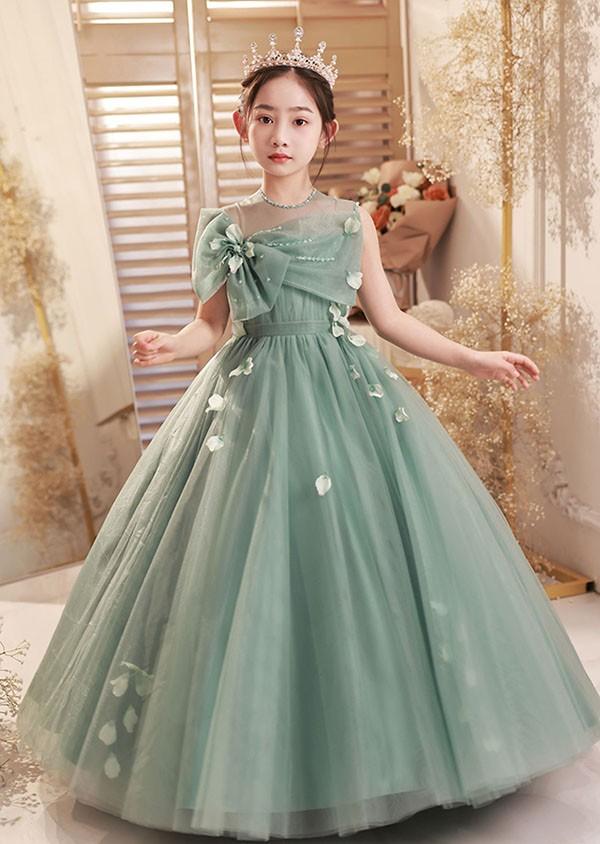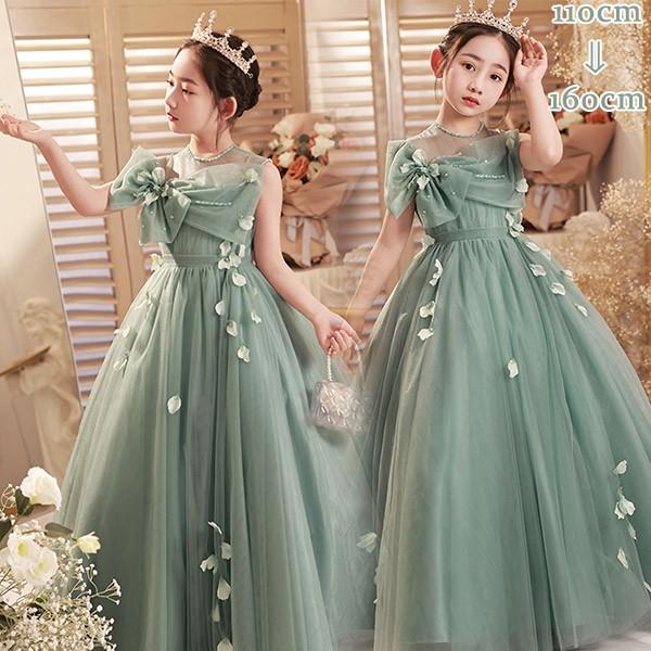 【レビュー投稿で+5%還元】子供ドレス グリーン ワンピース 花柄 ロングドレス ピアノ発表会 子供 ドレス チュール ノースリーブ 女の子 フォーマルドレス パーティードレス 結婚式 七五三 発表会 フラワーガール キッズドレス bi112ze