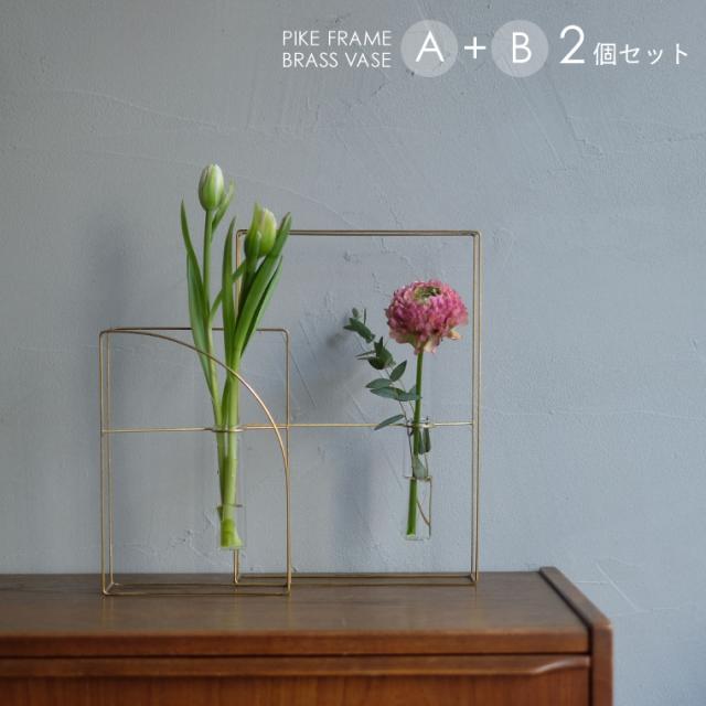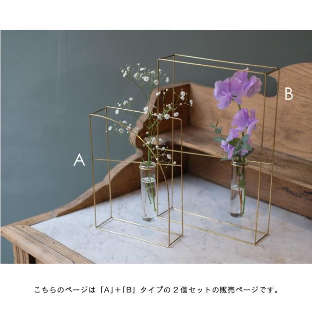 PIKE ピケ フレームブラスベース A+Bセット 花瓶 花びん 置物 一輪挿し 真鍮 ガラス クリア アンティークゴールド ワイヤーフレーム 額装 エレガント オブジェ 四角 高級感 ドライフラワー 生花 植物 フラワーベース 花入れ 観葉植物 北欧インテリア 日本製 agesugi_sis
