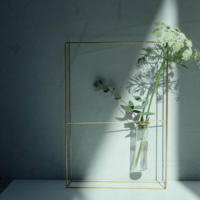シンプルな真鍮フレームがお花を引き立てる上品なフラワーベース。
