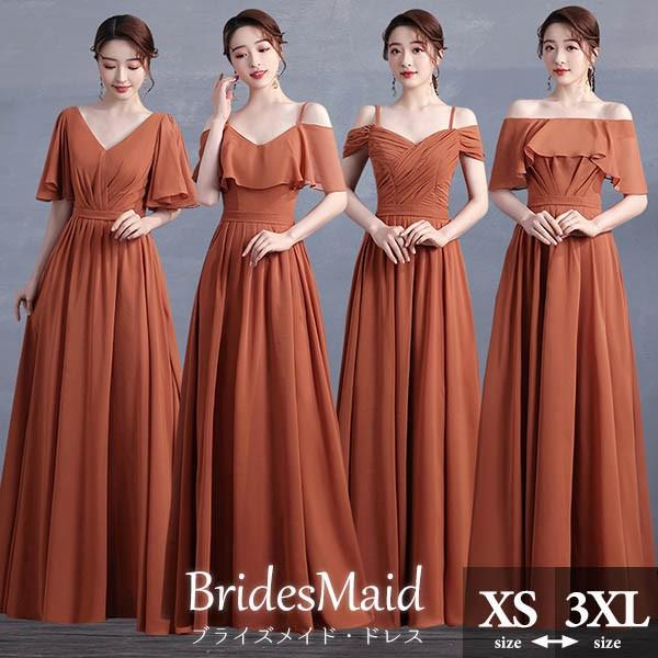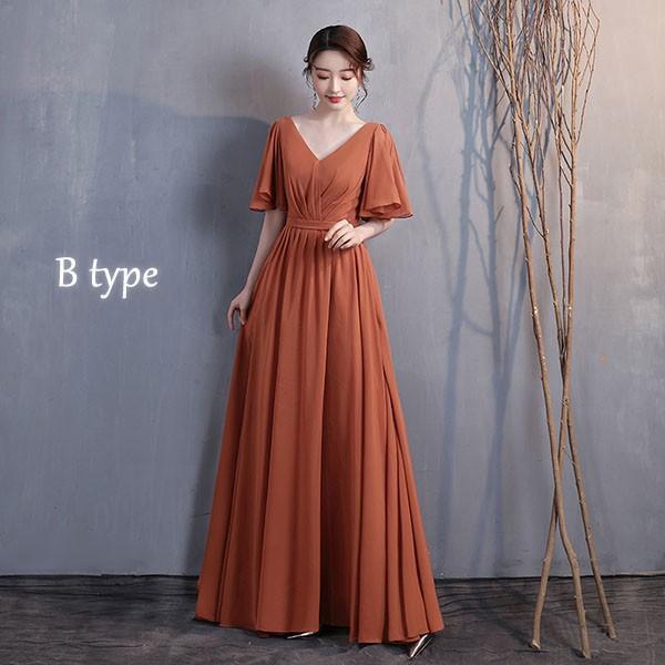 【レビュー投稿で+5%還元】ブライズメイド ドレス ロングドレス シフォン オレンジ 演奏会 ピアノ発表会 Vネック スレンダーライン ワンピース 夏 レディース 涼しい 袖付き 袖なし ゆったり リゾート 海 サマー 春夏きれいめ 大きいサイズ 小さいサイズ ドレス