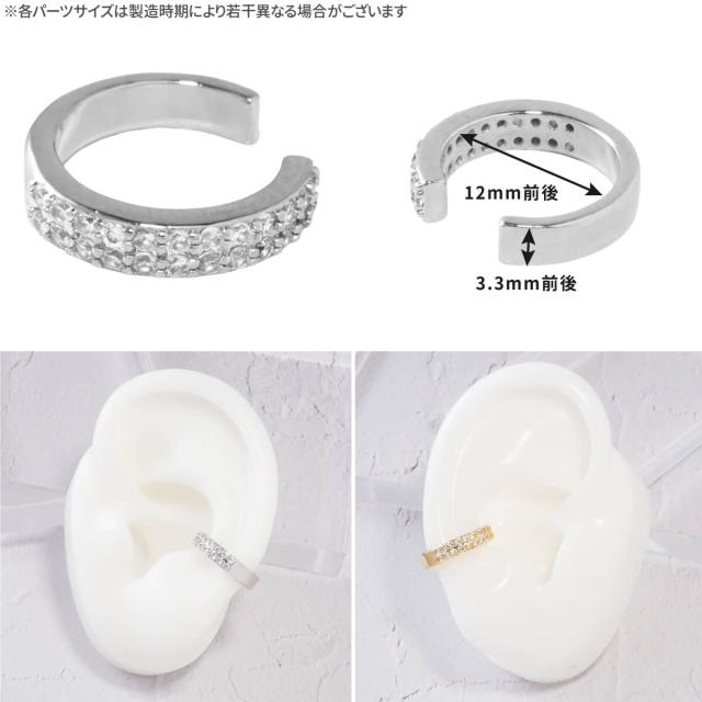 [ef.366] ダブル パヴェ シンプル イヤーカフ 合金 シルバー ゴールド ライン ビジュー キラキラ イヤーカフス イヤカフ ノンホール 上品