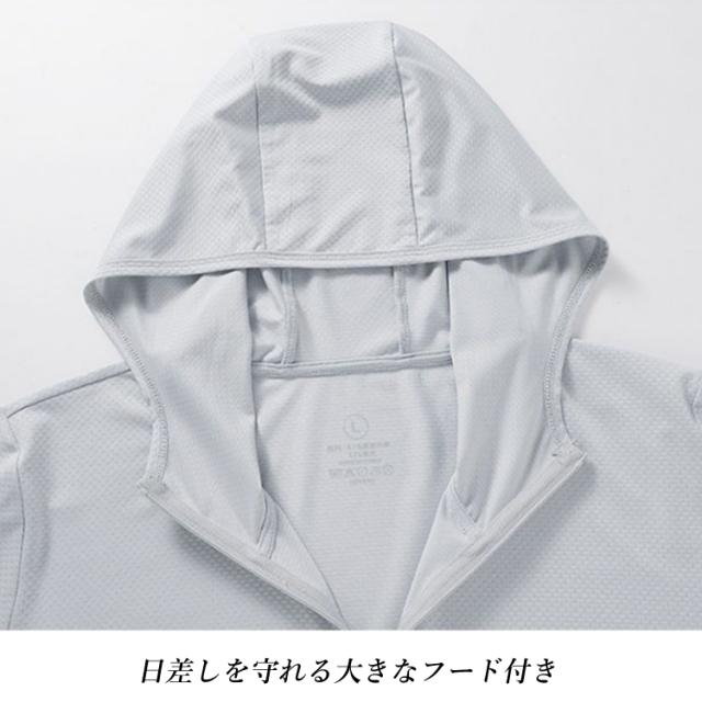 | 【商品説明】 | 通気性の高い日焼け止めにもなるフード付きパーカー 接触冷感性とストレッチ性もありシンプルなデザイン 肌触りがよく無地なので使いやすい商品! |