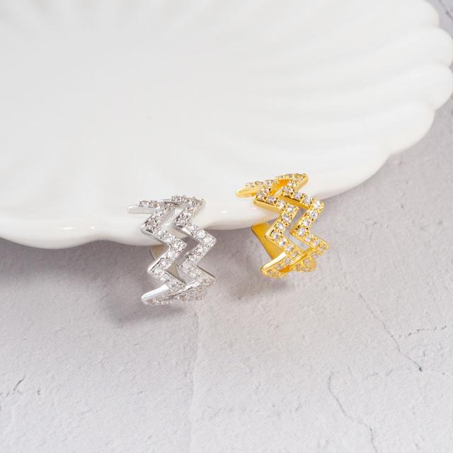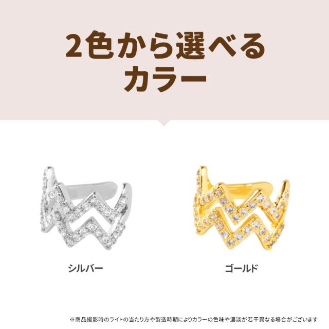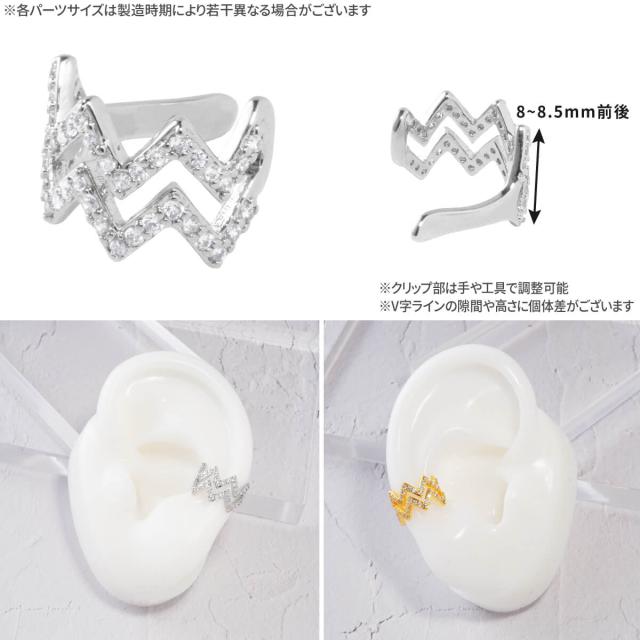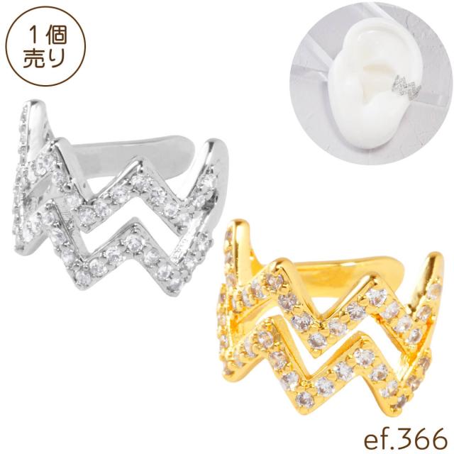 [ef.366] 2連 ギザギザ ライン パヴェ イヤーカフ 合金 ジルコニア ジュエル ウェーブ 波形 ビジュー キラキラ イヤーカフス イヤカフ ノンホール