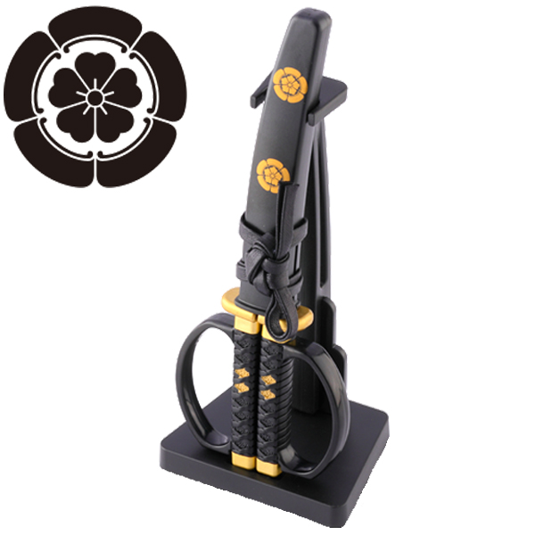 織田信長「五つ木瓜入り」日本刀鋏掛台付き (天下布武 柄巻 下緒 刃 刃物聖地)