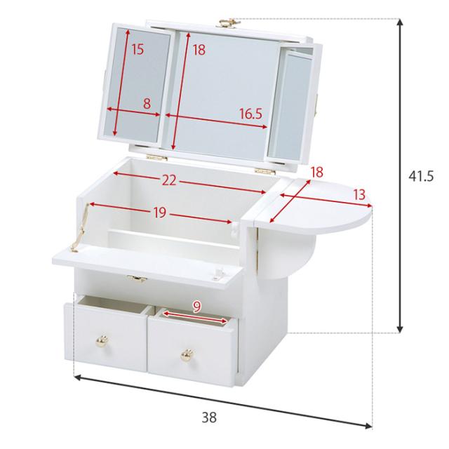 ドレッサー おしゃれ コスメボックス MUD-6930 三面鏡付 ミラー付 大容量収納 ミニテーブル付 持ち運べる 引出し付 メイク道具 スキンケア収納 アクセサリー収納