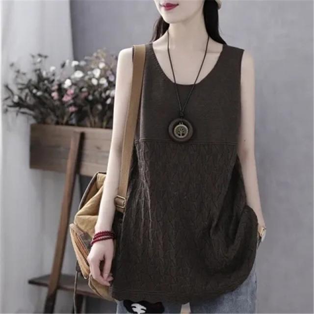 タンクトップ レディース キャミソール ノースリーブ サマーニット ロング丈 Uネック ヴィンテージ インナー おしゃれ 肌着 カ