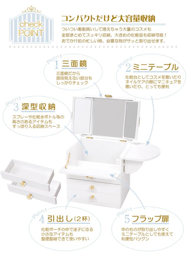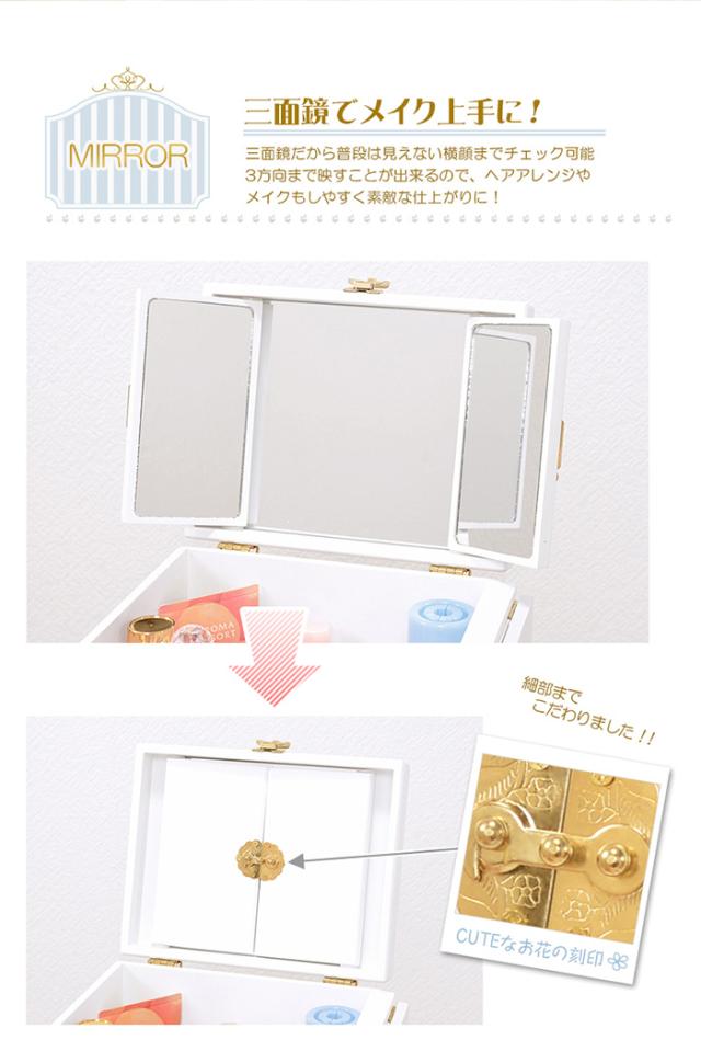 ドレッサー おしゃれ コスメボックス MUD-6835 三面鏡付 大容量収納 ミニテーブル付 クリスタル調取っ手 持ち運べる 引出し付 メイク用品 アクセサリー収納
