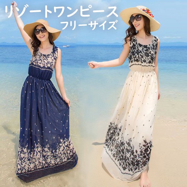 ワンピース 袖なし 花柄 夏ワンピ 可愛い ゆったり ロング丈 ラウンドネック 着痩せ 上品 セクシー 夏ワンピース 夏 リゾートワンピ 旅行 海 海辺 バカンス デート お出かけ ライトベージュ ブルー フリーサイズda120m4m4zr