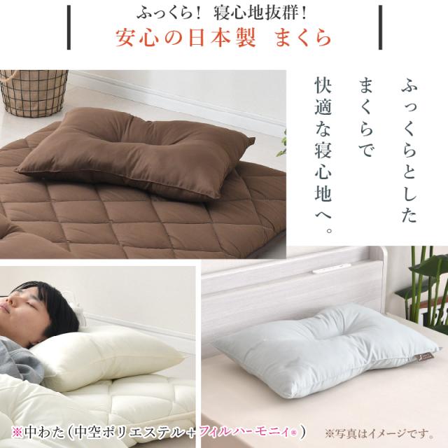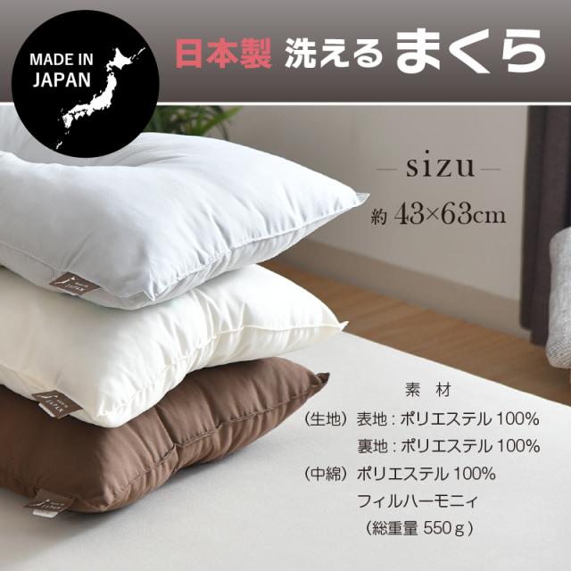 日本製 洗える 枕【約43×63cm】選べる3色「ホワイト」「グレー」「ブラウン」。