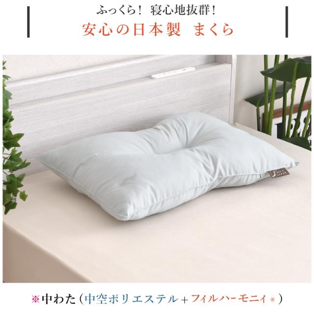枕 43×63cm 日本製 洗える ふっくら 選べる3色 まくら国産 くぼみ型 ウォッシャブル枕 オゾン加工 グレー ブラウン