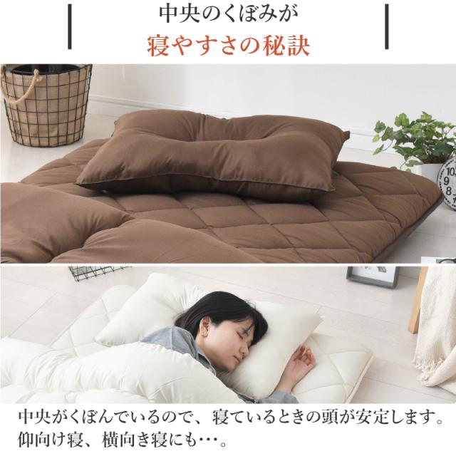 中央がくぼんでいるので、寝ているときの頭が安定します。 仰向け寝、横向き寝にも・・・。