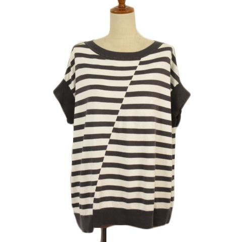 【中古】バジーレ BASILE 28 カットソー ボーダー ドルマンスリーブ シルク混 9 白 ホワイト グレー レディース