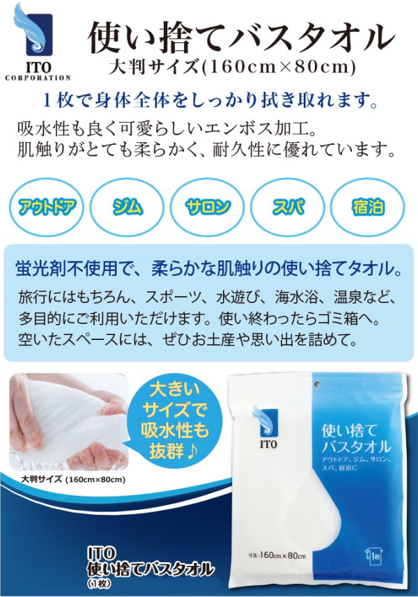 ITO使い捨てバスタオル×20個セット バスタオル タオル 大判 使い捨て 大判タオル 使い捨てバスタオル 使い捨てタオル アウトドア ジム サロン スパ 宿泊 スポーツ スイミング 海水浴 旅行 人気