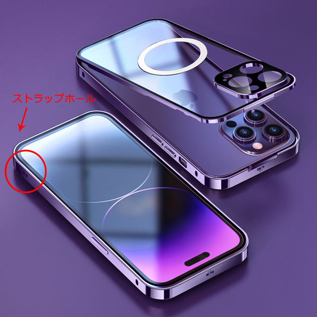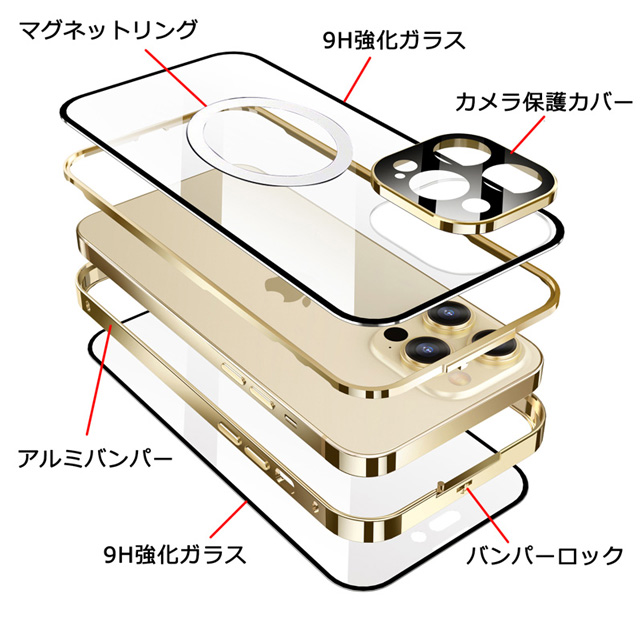 【上部バンパーロック Magsafe対応】 iPhone14 iPhone14Pro iPhone14Plus iPhone14ProMax ケース 両面ガラス カメラ保護カバー アイフォン14プロ カバー ストラップホール 9H強化ガラス 耐衝撃 アルミバンパー クリアケース