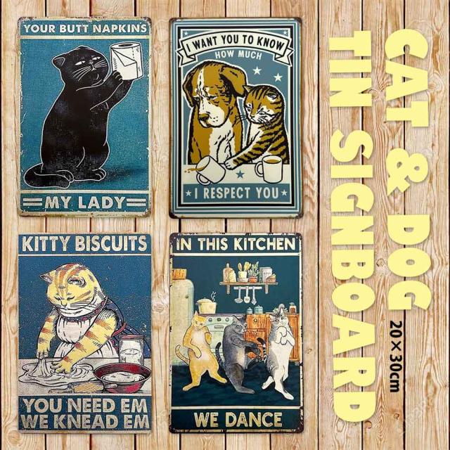 キャット & ドッグ ブリキ看板 20cm×30cm ネコ ねこ いぬ 犬 イヌ ペット アニマル アメリカン雑貨 サインボード バー レストラン ディスプレイ