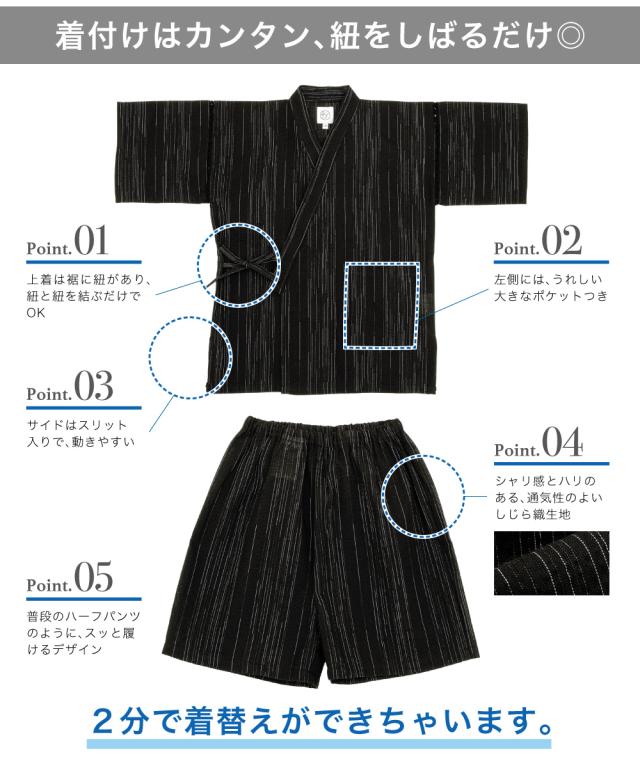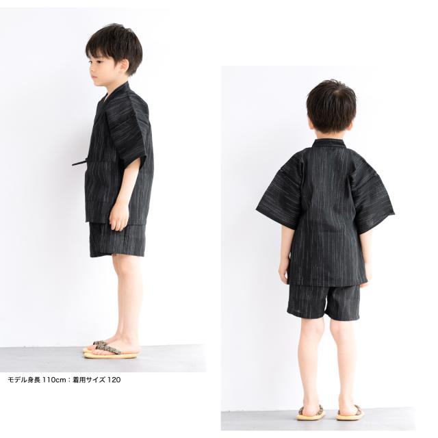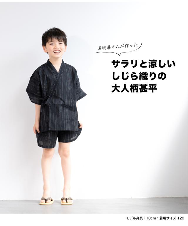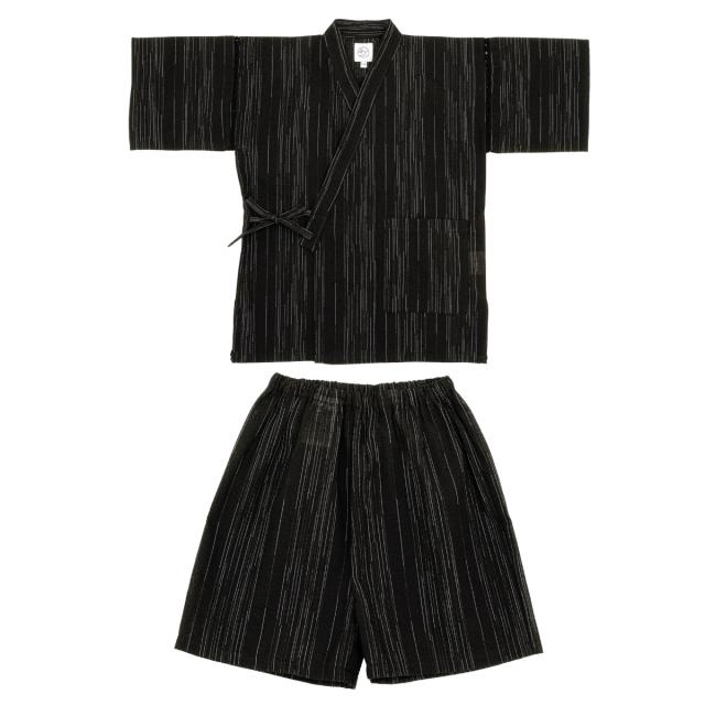 甚平 男の子 おしゃれ 子ども 男児 キッズ甚平 SOUBIENオリジナル しじら織 黒 ブラック 雨縞 夏 和装 メール便 送料無料
