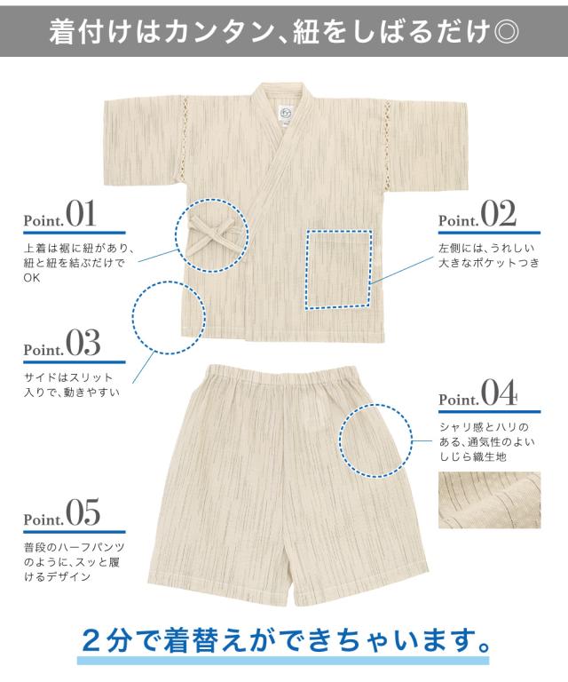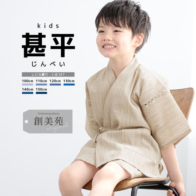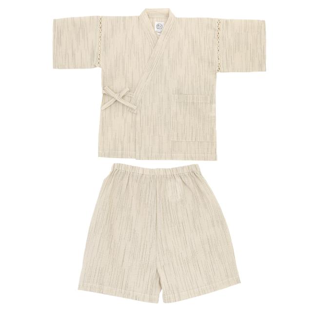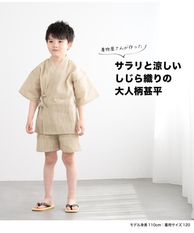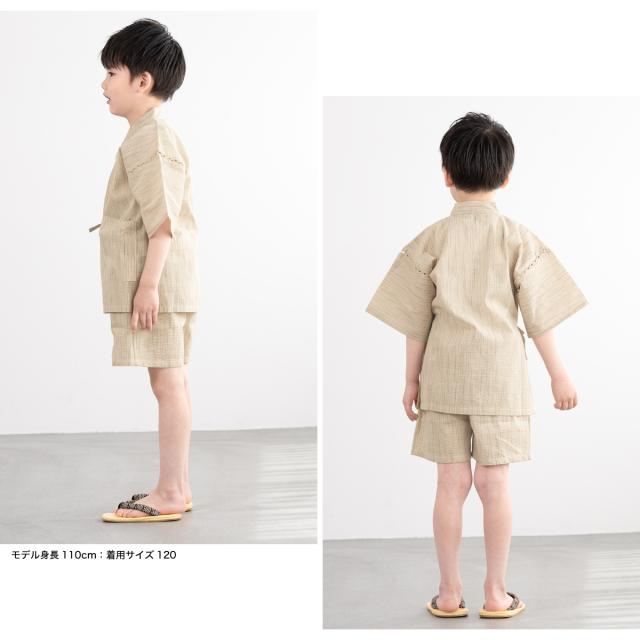 甚平 男の子 おしゃれ 子ども 男児 キッズ甚平 SOUBIENオリジナル しじら織 ベージュ 雨縞 夏 和装 メール便 送料無料